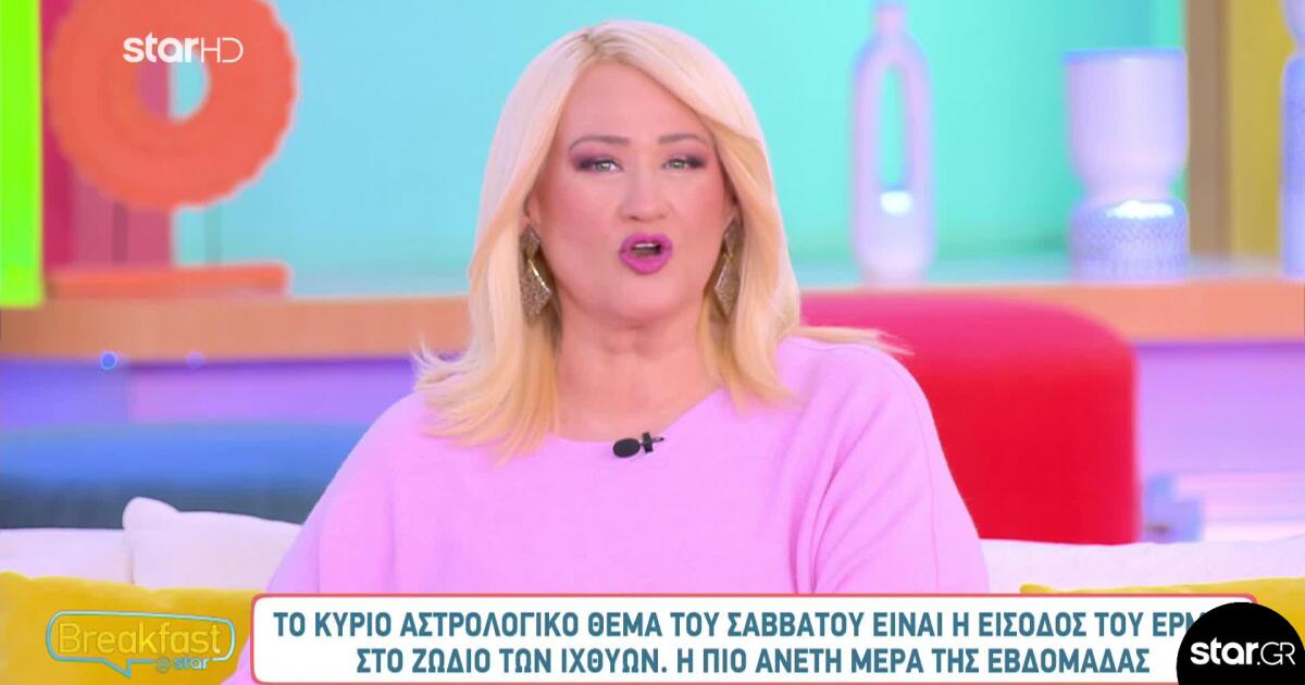Όπως αποκάλυψε στην εκπομπή Breakfast@Star, το κυριότερο αστρολογικό θέμα του Σαββάτου είναι η είσοδος του Ερμή στο ζώδιο των Ιχθύων, η οποία ευνοεί την αυριανή ημέρα.