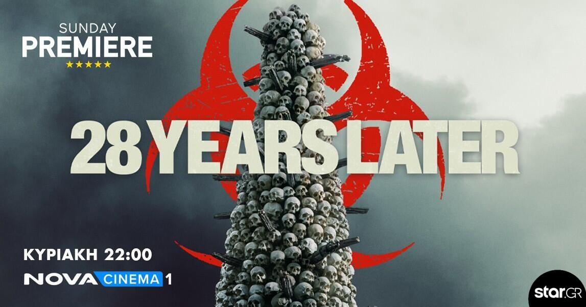 Την ταινία τρόμου «28 years later» («28 χρόνια μετά», 2025, διάρκειας 110’) με τους Ralph Fiennes, Jodie Comer, Aaron Taylor Johnson και σκηνοθεσία του Danny Boyle θα απολαύσουν οι σινεφίλ την Κυριακή 15 Φεβρουαρίου (22:00) στη ζώνη Sunday Premiere στο Novacinema1.