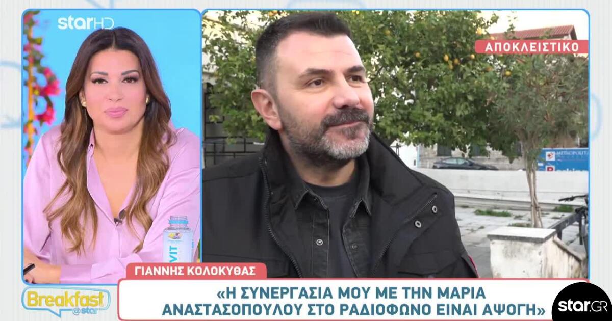 Ο Γιάννης Κολοκυθάς παραχώρησε συνέντευξη στην εκπομπή Breakfast@Star και, μεταξύ άλλων, μίλησε για τη ραδιοφωνική συνεργασία του με τη Μαρία Αναστασοπούλου.