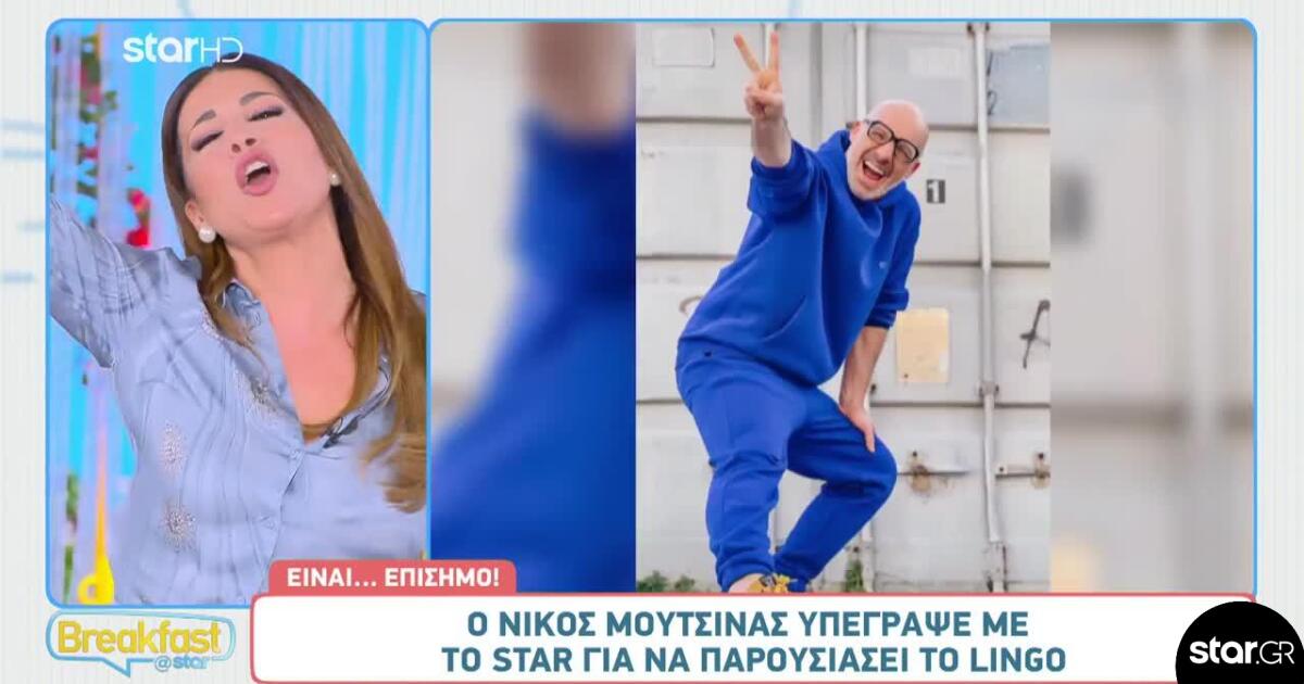 «Είναι επίσημο λοιπόν! Ο Νίκος Μουτσινάς υπέγραψε με το Star και θα είναι παρουσιαστής του νέου τηλεπαιχνιδιού Lingo! It’s official κυρίες και κύριοι. Πολύ αγαπημένο πρόσωπο, σε ένα διαφορετικό project, σε ένα διεθνώς αναγνωρίσιμο παιχνίδι που τα σπάει. Γίνεται χαμός πραγματικά σε όλο τον κόσμο», είπε αρχικά η παρουσιάστρια.