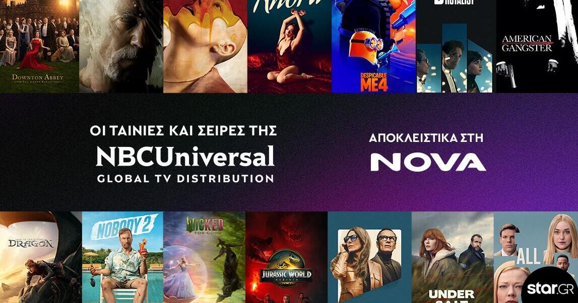 Η Nova, ανακοινώνει την επίτευξη αποκλειστικής, πολυετούς συμφωνίας με την NBCUniversal Global TV Distribution για τα δικαιώματα πρώτης προβολής (first-run pay window) στην Ελλάδα και την Κύπρο για ταινίες και τηλεοπτικές σειρές της NBCUniversal.