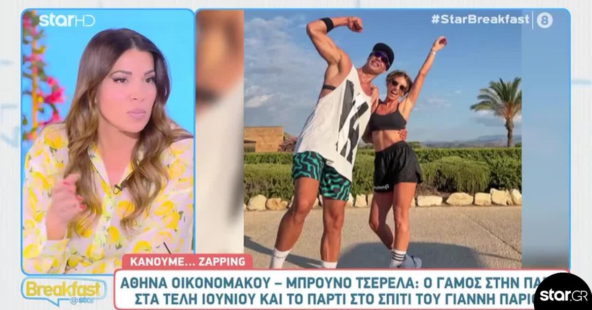 Αντίστροφα για μία από τις πιο όμορφες στιγμές της ζωής τους έχουν αρχίσει να μετράνε η Αθηνά Οικονομάκου και ο Μπρούνο Τσερέλα. Το ζευγάρι θα παντρευτεί στις 27 Ιουνίου στην Πάρο και σύμφωνα με το ρεπορτάζ της εκπομπής Breakfast@Star, το μυστήριο θα τελεστεί στην εκκλησία που ο σπουδαίος τραγουδιστής Γιάννης Πάριος είχε νυμφευτεί το 1996 τη Σοφία Αλιμπέρτη.