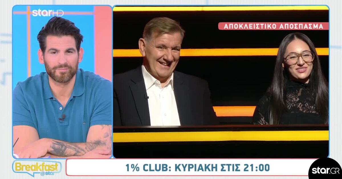 Αποκλειστικό απόσπασμα από το 1% Club, που προβλήθηκε στο Breakfast@Star, καταγράφει μια ιδιαίτερη βραδιά με παρουσιαστή τον Πέτρο Πολυχρονίδη και καλεσμένους την Klavdia και τον Γιώργο Θαναηλάκη, σε ένα επεισόδιο γεμάτο εκπλήξεις, χιούμορ και ανατροπές.