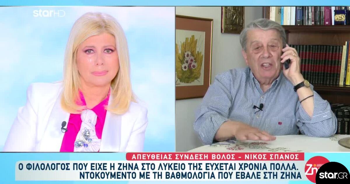 Στον αέρα της εκπομπής βγήκε και ο καθηγητής Νίκος Σπανός, που είχε μαθήτρια την παρουσιάστρια στην Α΄Λυκείου. Ο φιλόλογος έδειξε on air τον έλεγχο της Ζήνας που όπως φαίνεται είχε πάρει στα Αρχαία 18, τα Νέα 19 και την Έκθεση 17.