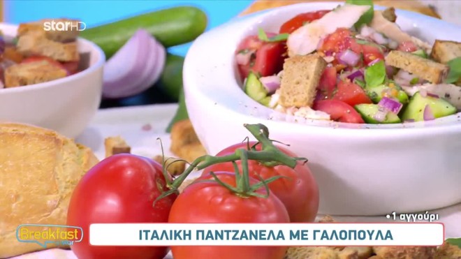Άρωμα Ιταλίας είχε η συνταγή που έφτιαξε ο Χρήστος Μοίρας στην εκπομπή Breakfast@Star. Ο σεφ ετοίμασε παντζανέλα, και έδειξε βήμα-βήμα στους τηλεθεατές τη διαδικασία.
