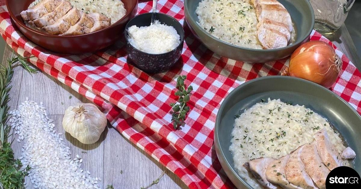 Ο Γιώργος Ρήγας μαγειρεύει ριζότο με κοτόπουλο