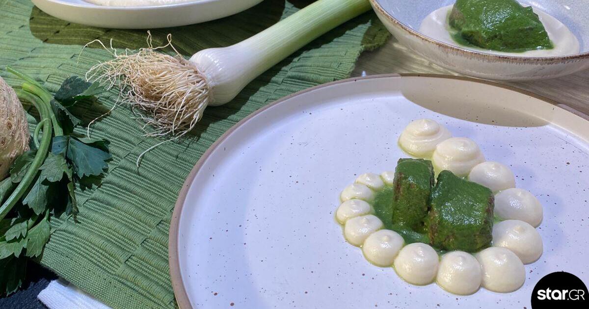 1. Σε φαρδιά κατσαρόλα ζεσταίνεις το ελαιόλαδο και ροδίζεις το μοσχάρι απ’ όλες τις πλευρές. 2. Προσθέτεις το κρεμμύδι, το αφήνεις να μαλακώσει, σβήνεις με το κρασί και αφήνεις να εξατμιστεί το αλκοόλ. 3. Προσθέτεις πράσα, σέλινο, αλάτι, πιπέρι και τον ζωμό (να το σκεπάζει). 4. Σιγοβράζεις 1½–2 ώρες μέχρι να μαλακώσει πολύ. 5. Όταν είναι έτοιμο, αφαιρείς το κρέας και κρατάς τα λαχανικά και το ζωμό για τη σάλτσα. Πράσινη βελούδινη σάλτσα 1. Στο μπλέντερ βάζεις τα πράσα, το σέλινο, λίγο ζωμό από το φαγητό και μια χούφτα φρέσκο σπανάκι που έχεις ζεματίσει 10 δευτερόλεπτα σε βραστό νερό και το έχεις κρυώσει σε πάγο. 2. Προσθέτεις 1 κ.σ. βούτυρο ή λίγο ελαιόλαδο και λίγο χυμό λεμονιού. 3. Χτυπάς καλά μέχρι να γίνει λεία και ομοιόμορφη. 4. Περνάς από ψιλή σίτα για πιο “chefy” υφή. Θα έχει έντονο πράσινο χρώμα και λεμονάτο άρωμα. Πουρές σελινόριζας (με γάλα και κρέμα) 1. Σε κατσαρόλα ρίχνεις το γάλα και την κρέμα γάλακτος. 2. Μόλις πάρουν βράση, προσθέτεις τη σελινόριζα και λίγο αλάτι. 3. Σιγοβράζεις 20–25 λεπτά μέχρι να μαλακώσει πολύ. 4. Σουρώνεις (κρατάς λίγο από το υγρό) και πολτοποιείς τη σελινόριζα στο μπλέντερ ή με ραβδομπλέντερ. 5. Προσθέτεις το βούτυρο και δουλεύεις μέχρι να γίνει βελούδινος. 6. Αν χρειάζεται, ρίχνεις λίγο από το υγρό του βρασμού για να φέρεις τη σύσταση που θέλεις. 7. Διορθώνεις με πιπέρι και (αν σου αρέσει) λίγο μοσχοκάρυδο.