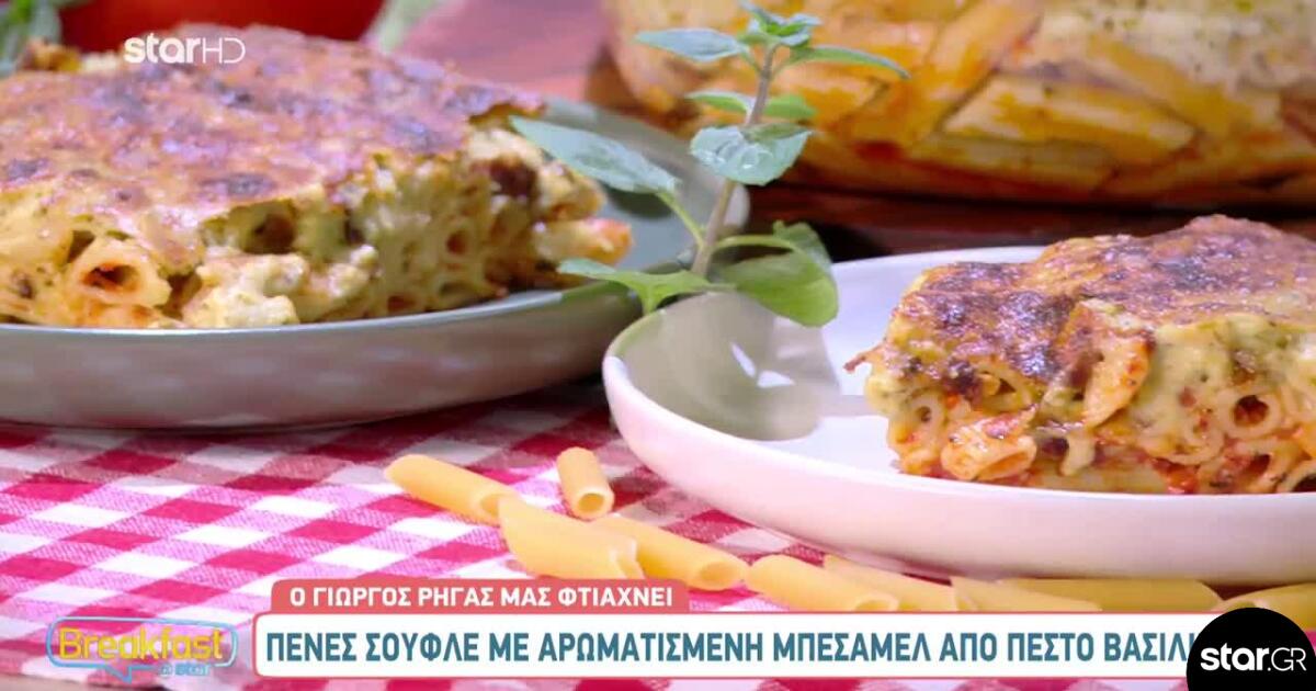 Πένες σουφλέ με αρωματισμένη μπεσαμέλ απο πέστο βασιλικού
