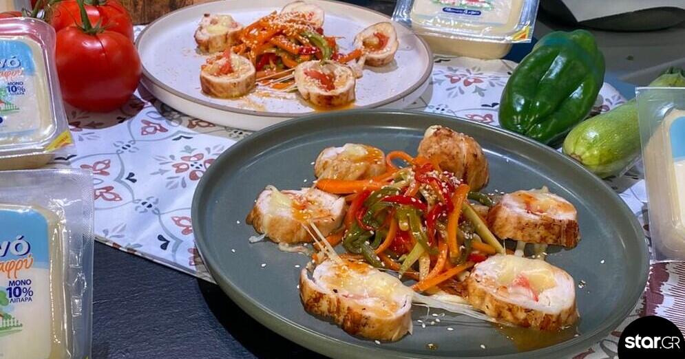 Ο σεφ μπήκε στην κουζίνα της εκπομπής και ετοίμασε νόστιμο ρολό κοτόπουλο γεμιστό με κίτρινο ελαφρύ τυρί και λαχανικά. Δείτε πώς να το φτιάξετε!