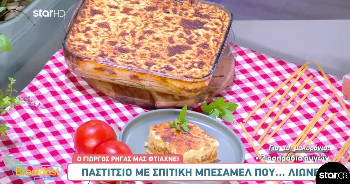 Αν σας αρέσει το παστίτσιο και ακόμη περισσότερο η λαχταριστή μπεσαμέλ του, ο Γιώργος Ρήγας έδωσε στους τηλεθεατές της εκπομπής Breakfast@Star μία συνταγή που θα λατρέψετε.