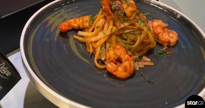 Γαριδομακαρονάδα με σάλτσα λιαστής ντομάτας με φέτα