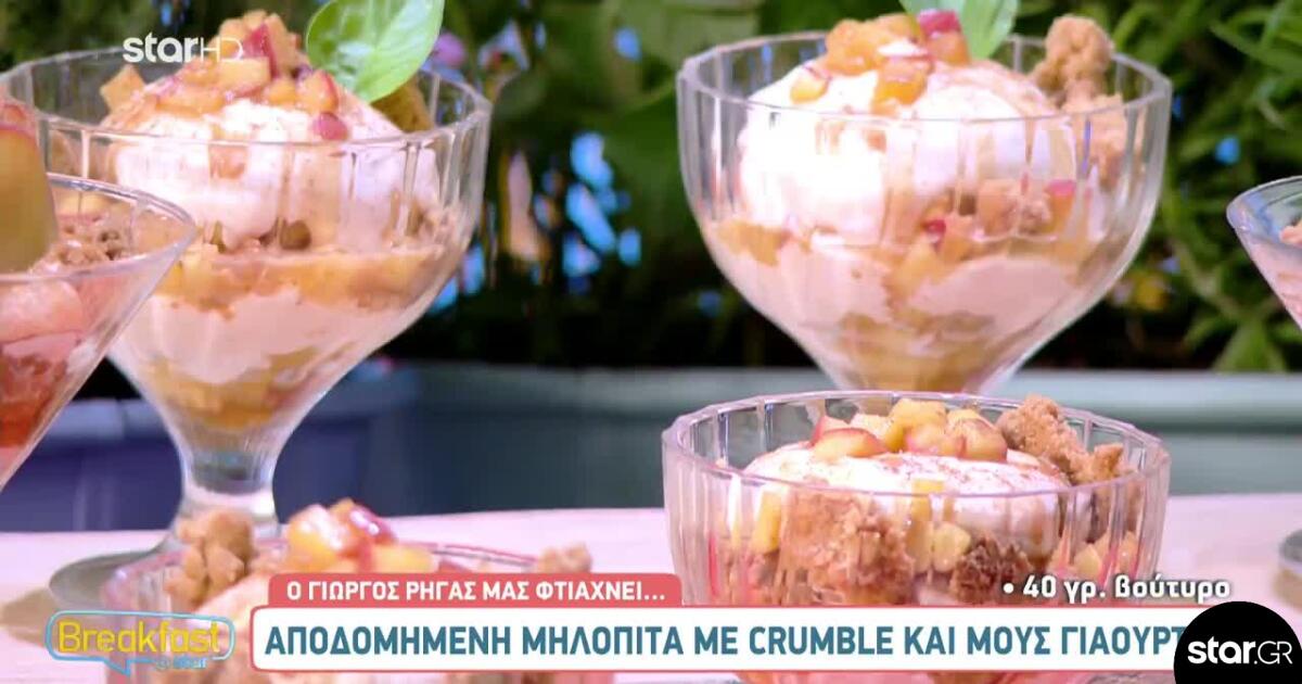 Αποδομημένη μηλόπιτα με crumble και μους γιαουρτιού