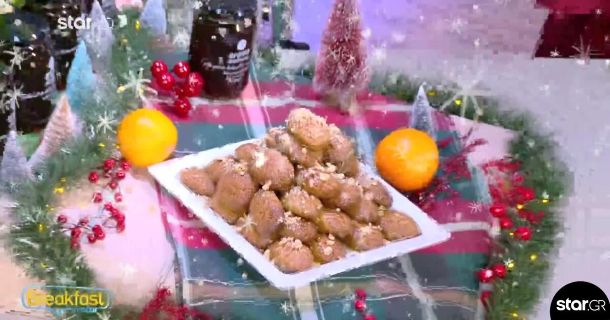 Ο σεφ μπήκε στην κουζίνα, έφτιαξε μελομακάρονα με μέλι και ξύσμα πορτοκαλιού και έδειξε βήμα-βήμα στους τηλεθεατές τη διαδικασία.
