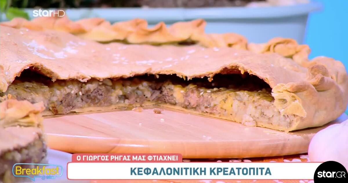 Ο σεφ μπήκε στην κουζίνα της εκπομπής και έδειξε στους τηλεθεατές πώς να φτιάξουν νόστιμη κεφαλλονίτικη κρεατόπιτα.
