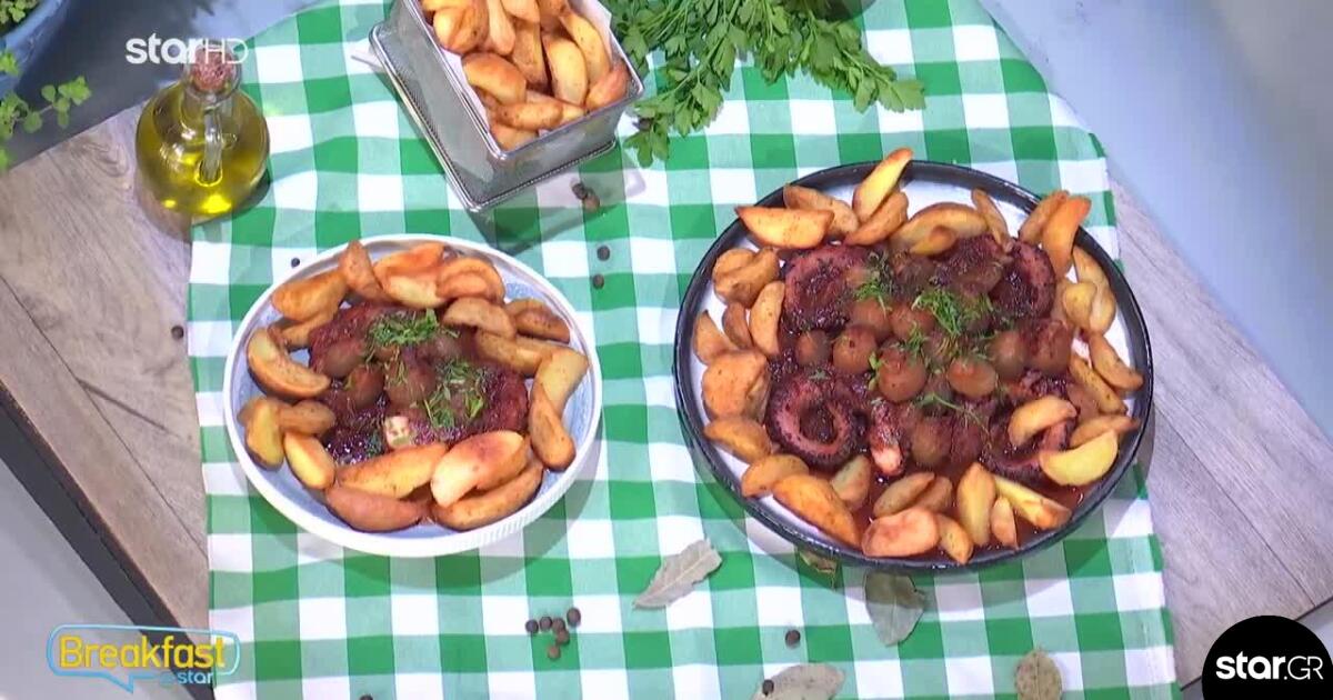 Ο Γιώργος Ρήγας λοιπόν έδειξε στους τηλεθεατές της εκπομπής Breakfast@Star μία συνταγή για χταπόδι στιφάδο.